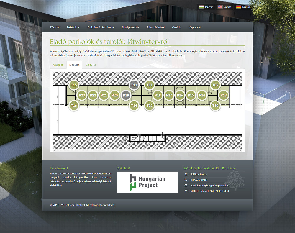 - Visual menu of apartments and parking lots